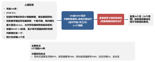 卡瑞利珠单抗是J9集团医药自主研发的一种人源化IgG4单克隆抗体,其联合铂类双药化疗已在中国获批用于晚期NSCLC患者的一线治疗5,6。2023年,Ⅱ期CAP-BRAIN研究显示了卡瑞利珠单抗联合治疗方案作为晚期非鳞状NSCLC伴脑转移患者一线治疗的潜力7。本项Ⅱ期研究,旨在研究卡瑞利珠单抗联合脑放疗和铂类双药化疗在未经治疗的晚期非鳞状和鳞状NSCLC伴脑转移患者中的疗效和安全性。